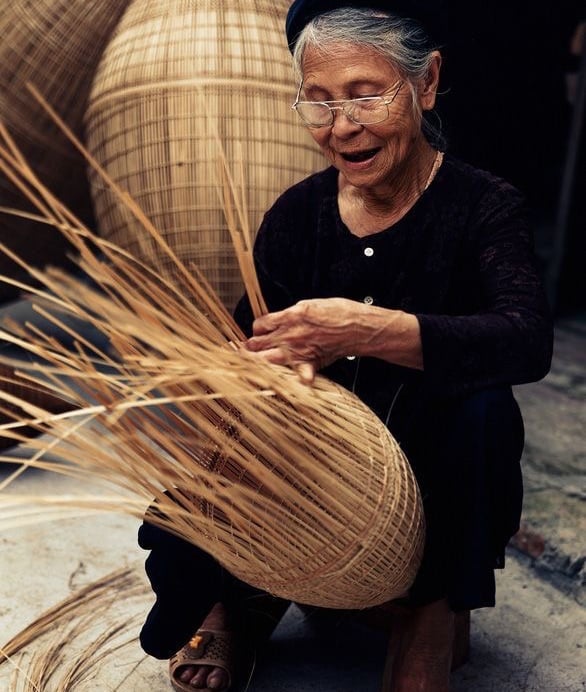 Mbah Harsa, an elderly Javanese woman, has spent her life in a close-knit village surrounded by the lush greenery of Indonesia. Each morning, as the sun rises, she and her friends gather in the village to weave rattan baskets that are a hallmark of our parcels.